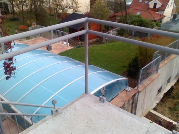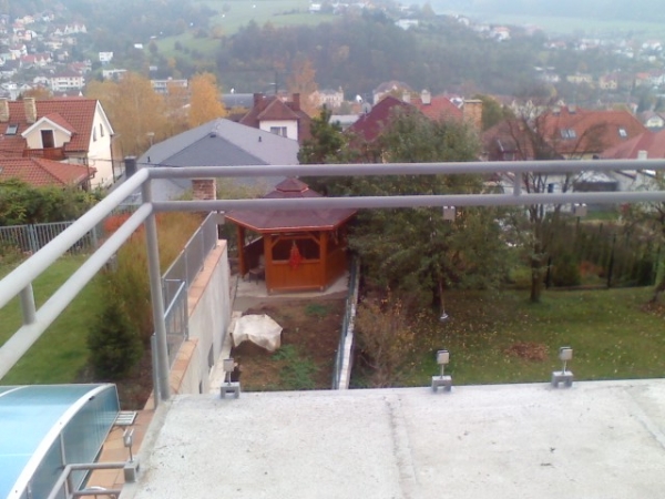 Při rekonstrukci RD se majitelé rozhodli ke stávajícímu balkonu přistavit verandu a schodiště vedoucí do patra. Zároveň vyměnili staré zábradlí za nové v kombinaci železo / nerez / bezpečnostní tvrzené sklo.
