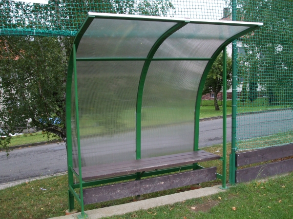 Pro fotbalové oddíly vyrábíme střídačky pokryté lexanem. Na zimu je lze snadno demontovat a uschovat před sněhem.